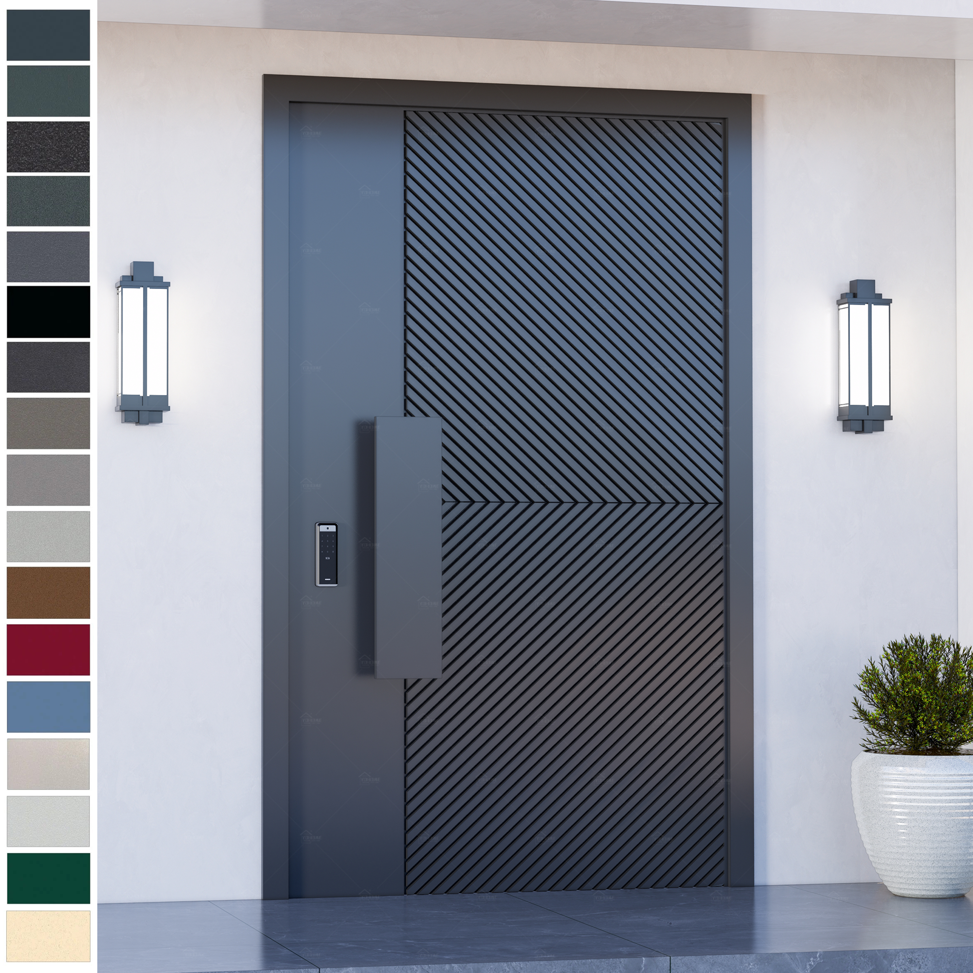 We offer a wide range of door options. Steel door panels provide high durability and robust protection against harsh weather conditions and external threats, while solid wood panels deliver a classic, elegant aesthetic. Each door showcases unique natural wood grain patterns. The composite material combines modern technology with traditional wood composites to ensure durability while remaining aesthetically pleasing and providing excellent sound insulation.