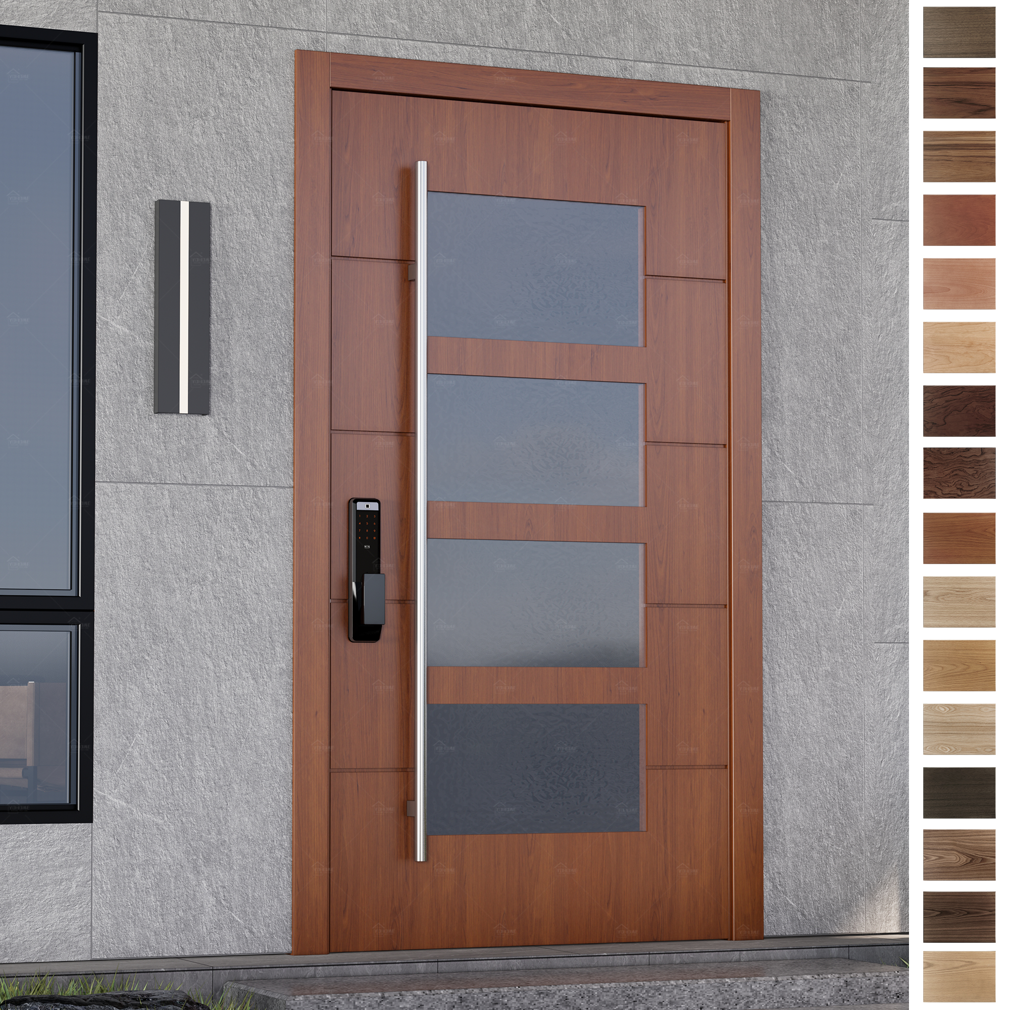 The door panel is the central visual and functional part of the entry door, typically constructed from wood, steel, etc. It directly influences the door's aesthetic appeal and performance, such as insulation and soundproofing. Whether flat, recessed, or carved, the door panel can be customized to suit a variety of architectural styles and personal preferences.
