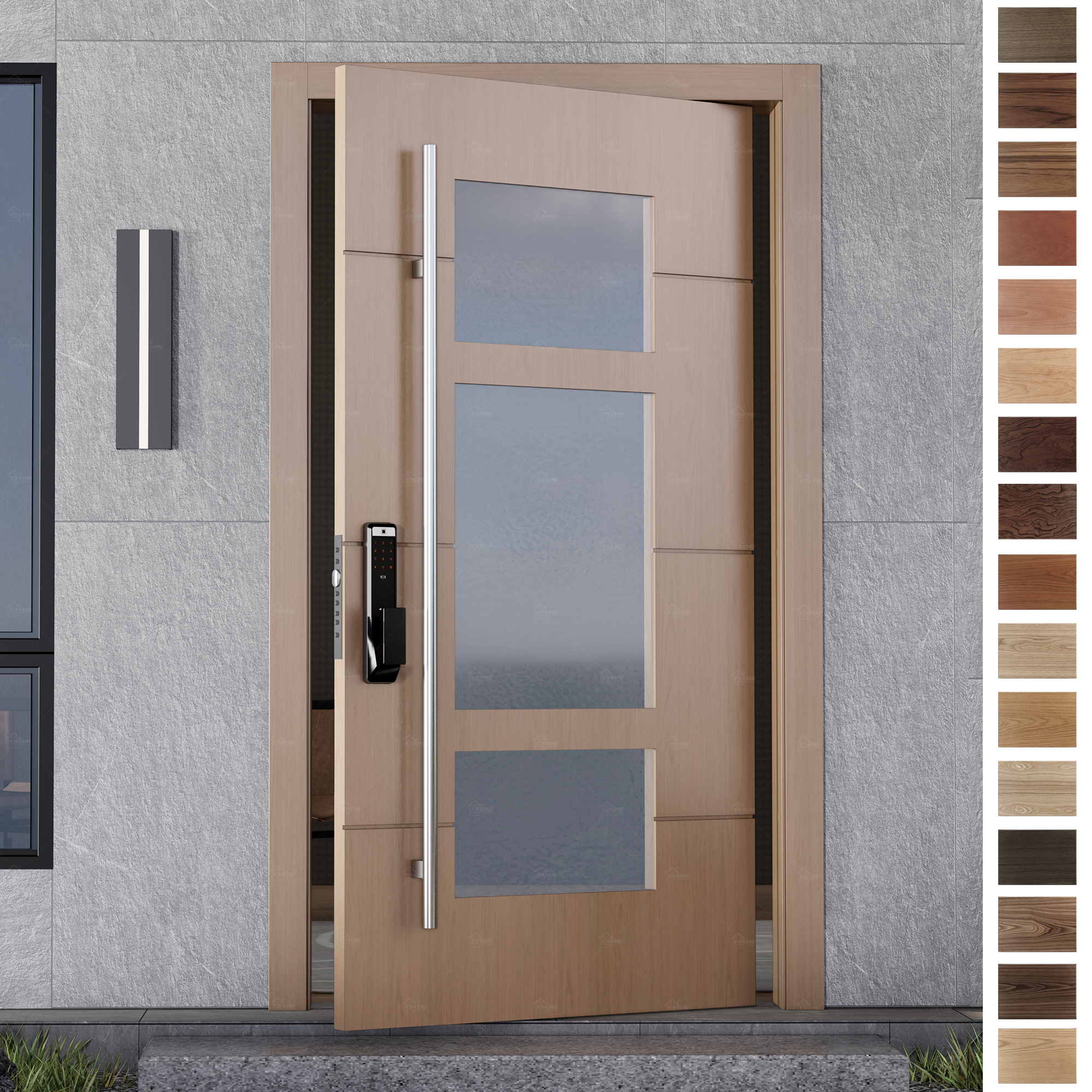 The door panel is the central visual and functional part of the entry door, typically constructed from wood, steel, etc. It directly influences the door's aesthetic appeal and performance, such as insulation and soundproofing. Whether flat, recessed, or carved, the door panel can be customized to suit a variety of architectural styles and personal preferences.