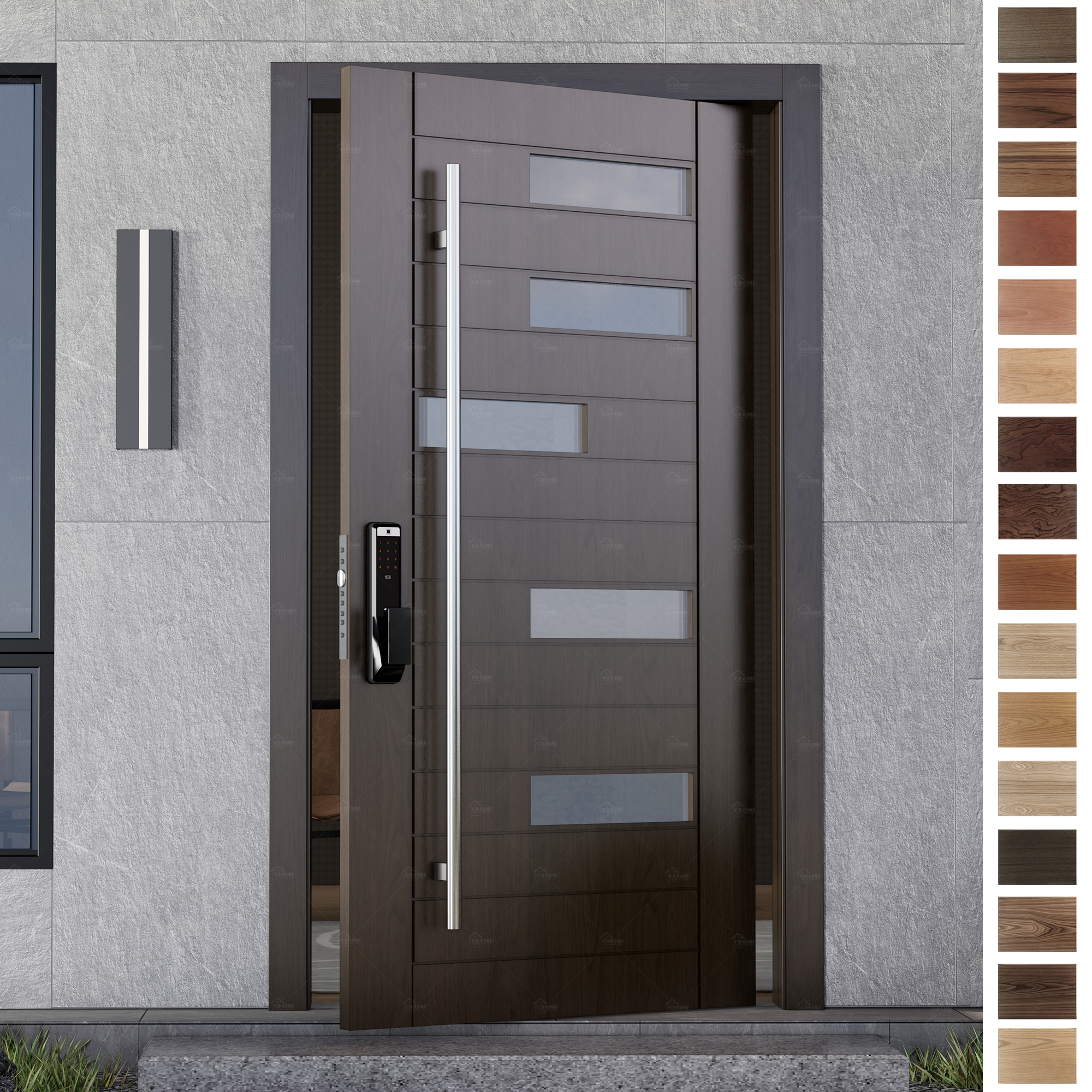 With our color customization service, you can choose the main color of your door and also select the color of the door frame, handles, and other accessories, creating a truly one-of-a-kind Entry Door. Whether you prefer a minimalist monochrome look or want to combine multiple colors and textures, we can tailor the door to suit your specific style.