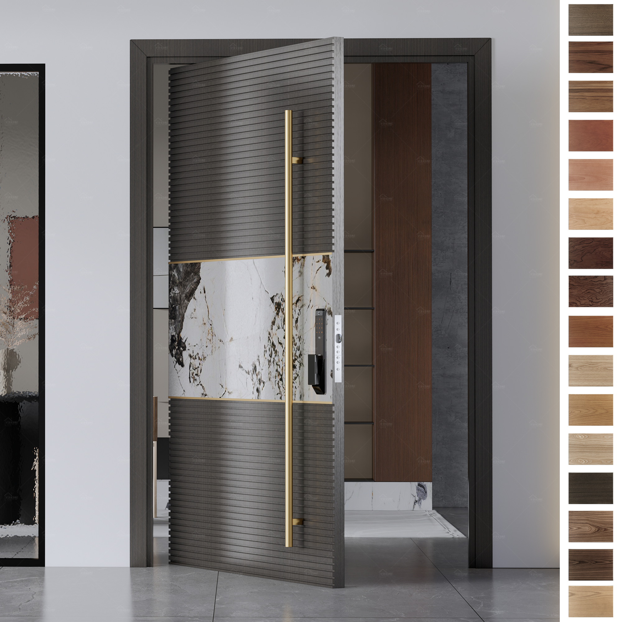 We offer a wide range of door options. Steel door panels provide high durability and robust protection against harsh weather conditions and external threats, while solid wood panels deliver a classic, elegant aesthetic. Each door showcases unique natural wood grain patterns. The composite material combines modern technology with traditional wood composites to ensure durability while remaining aesthetically pleasing and providing excellent sound insulation.
