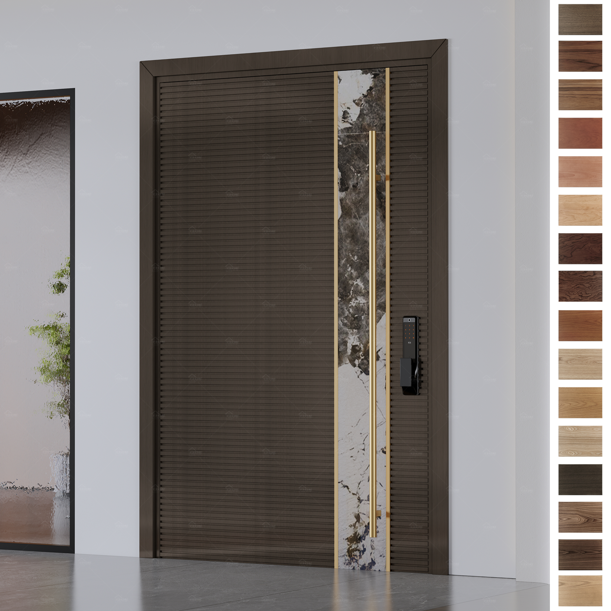 We offer a wide range of door options. Steel door panels provide high durability and robust protection against harsh weather conditions and external threats, while solid wood panels deliver a classic, elegant aesthetic. Each door showcases unique natural wood grain patterns. The composite material combines modern technology with traditional wood composites to ensure durability while remaining aesthetically pleasing and providing excellent sound insulation.