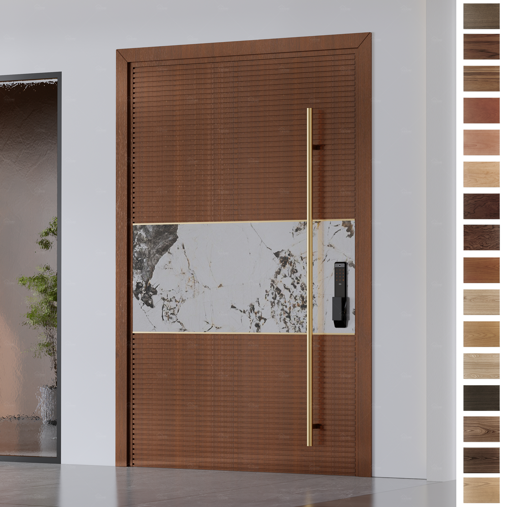 China Top Pivot Door Supplier Long Lasting Stable Solid Core Front Doors Contemporary Wooden Front Doors with Fingerprint Reader