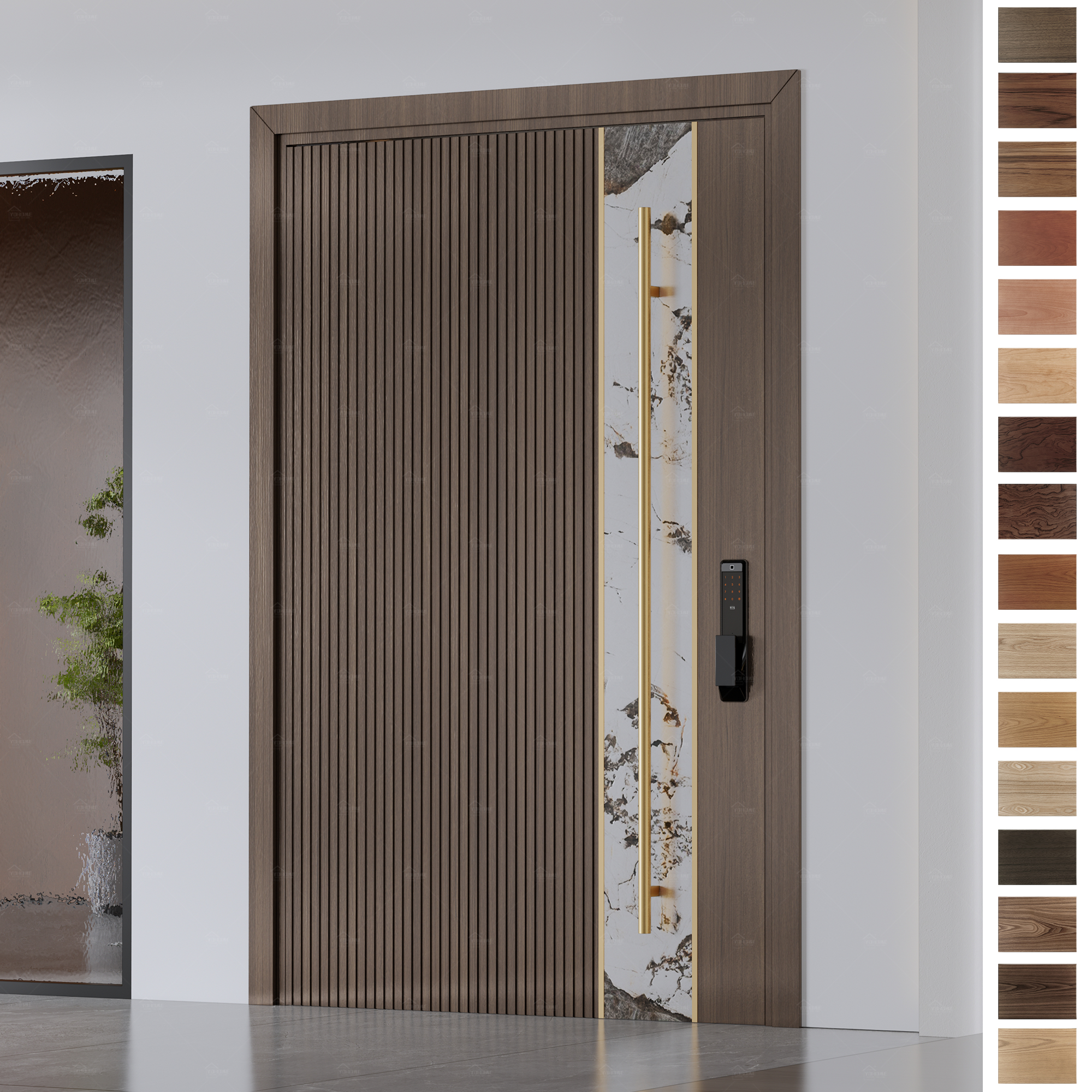 The door panel is the central visual and functional part of the entry door, typically constructed from wood, steel, etc. It directly influences the door's aesthetic appeal and performance, such as insulation and soundproofing. Whether flat, recessed, or carved, the door panel can be customized to suit a variety of architectural styles and personal preferences.