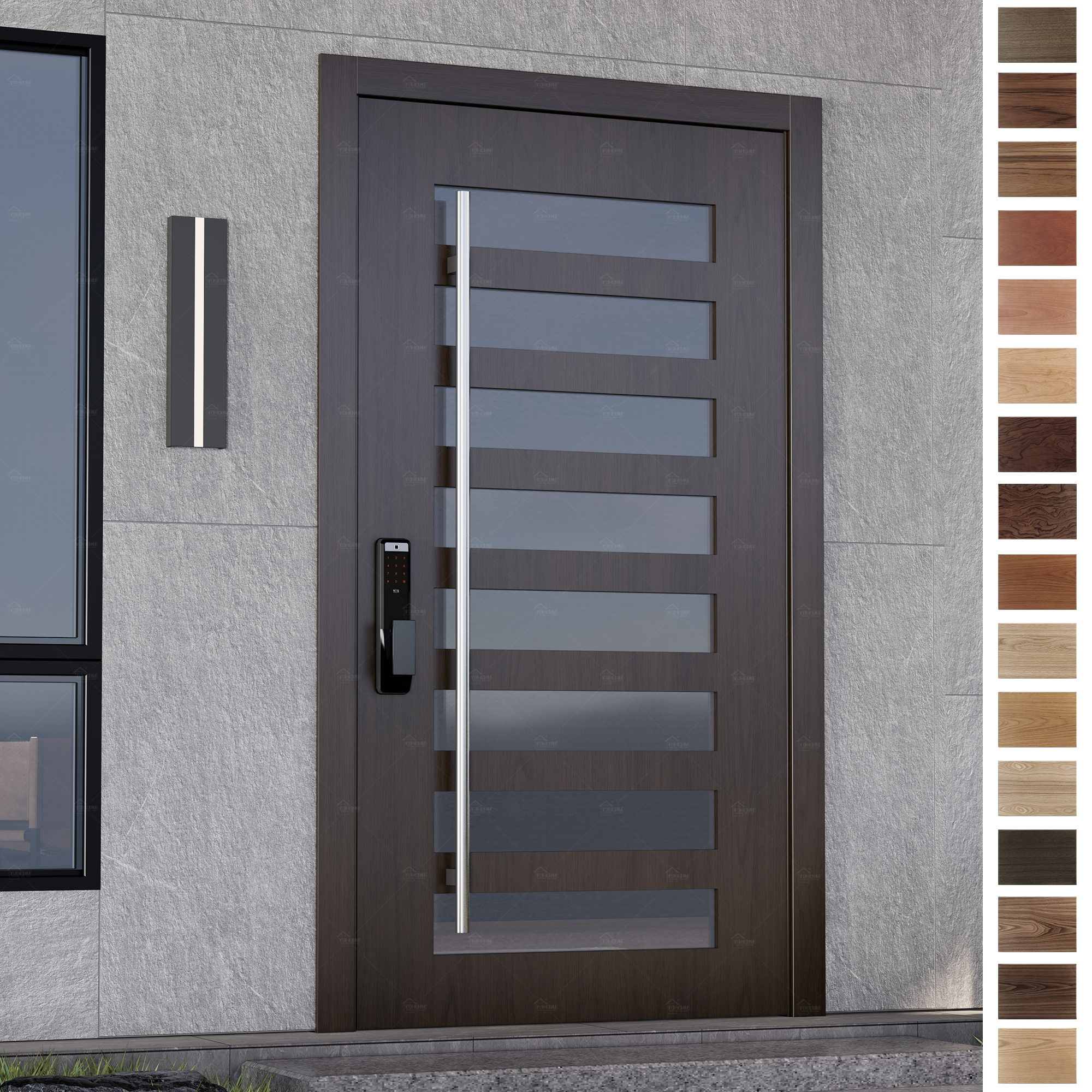 The door panel is the central visual and functional part of the entry door, typically constructed from wood, steel, etc. It directly influences the door's aesthetic appeal and performance, such as insulation and soundproofing. Whether flat, recessed, or carved, the door panel can be customized to suit a variety of architectural styles and personal preferences.